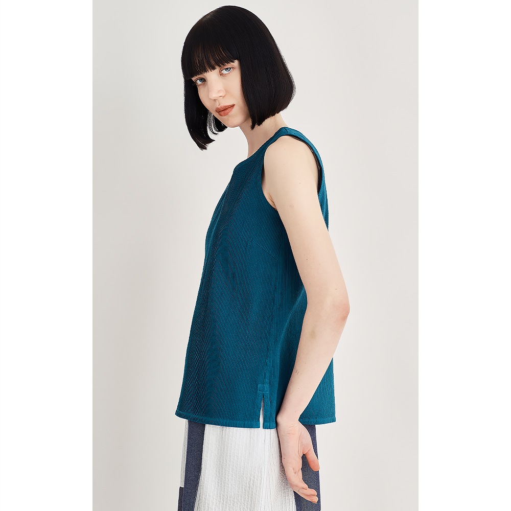 ボディを美しく見せるシルエットにこだわったタンクトップは、同シリーズのシャツジャケットのインナーにはもちろんのこと、独特なハリ感とリッチ感をいかし1枚でも活躍します。