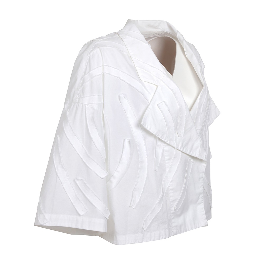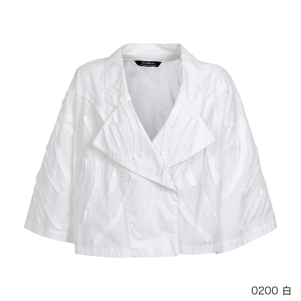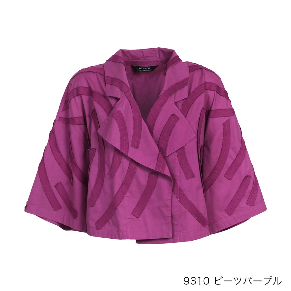 アイビーをイメージしたカツラギ素材のテープを、流れるように全体に配置したライトジャケット。