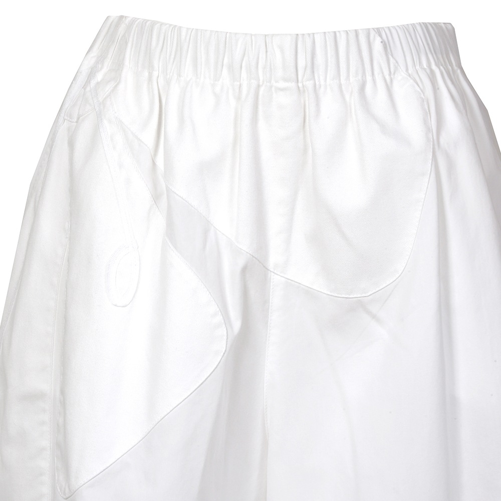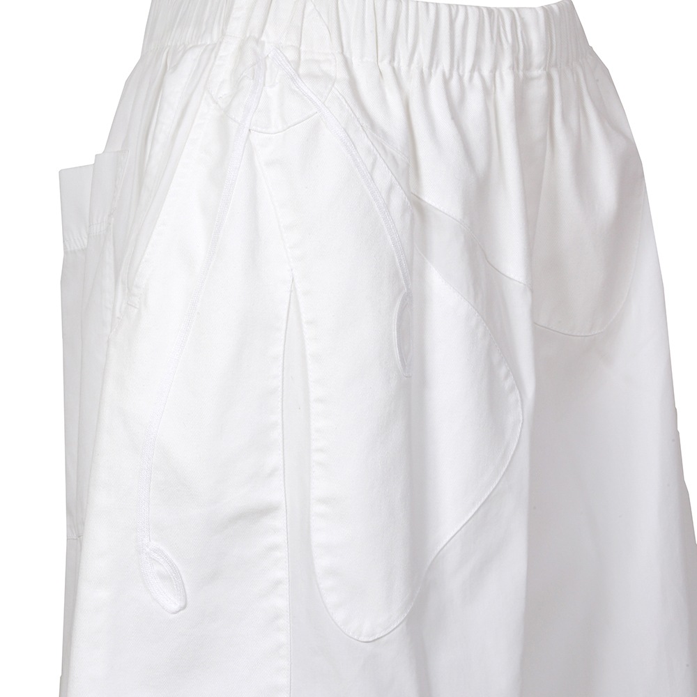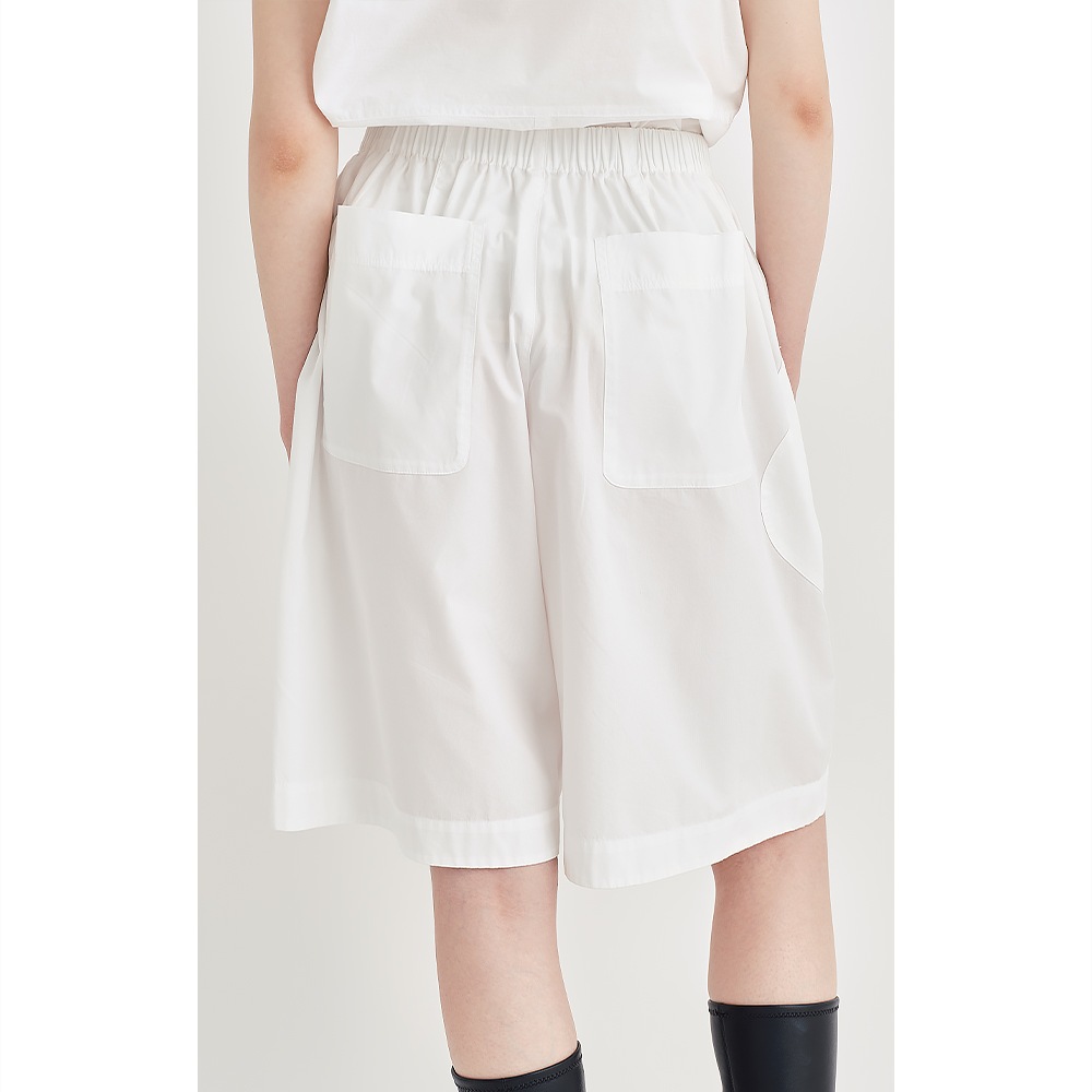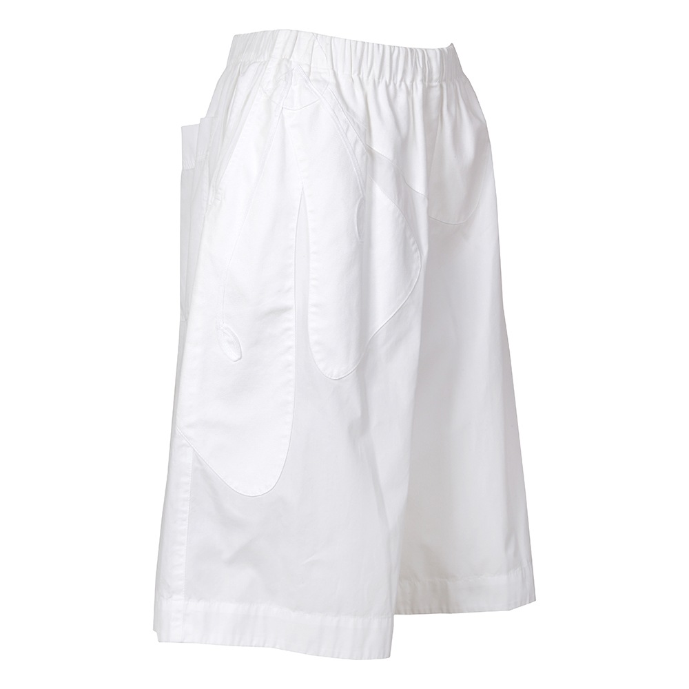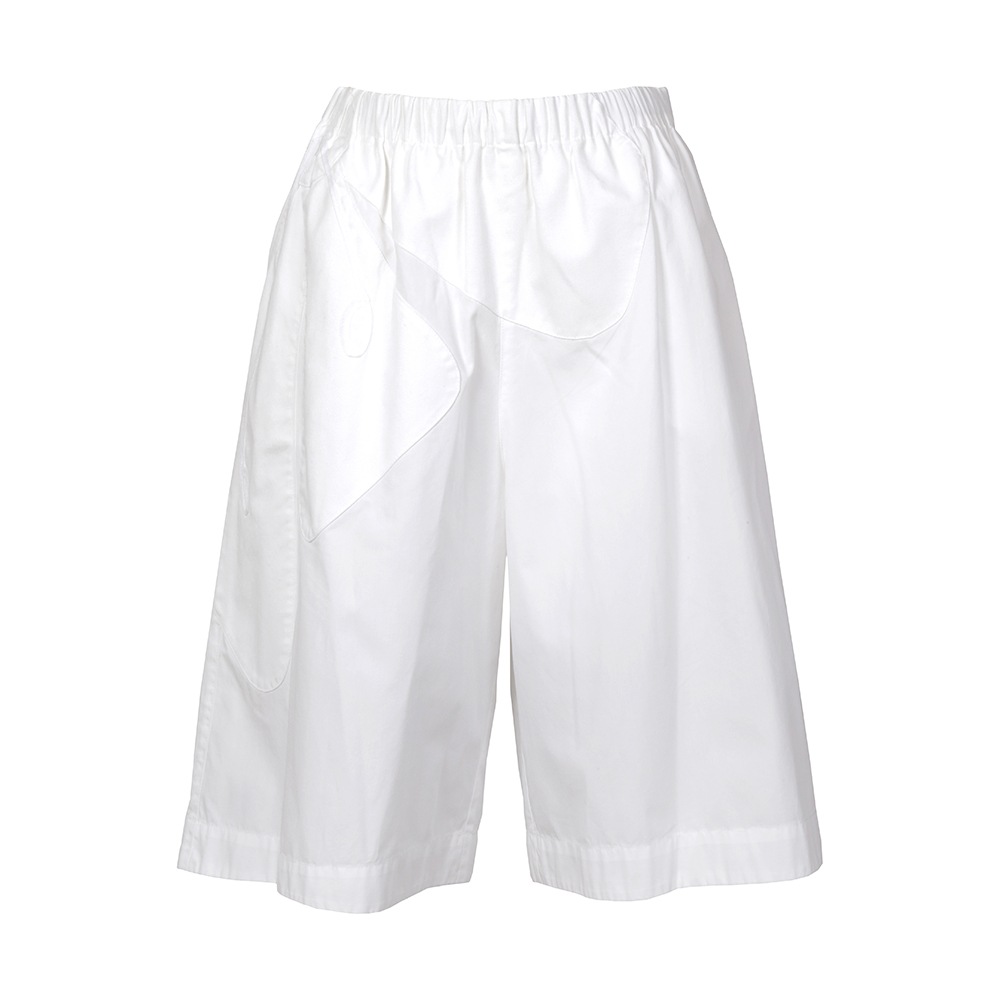 アシンメトリーの大柄アップリケが印象的なハーフパンツは、アクティブで軽やかな夏スタイリングを叶えるいちおしのアイテム。