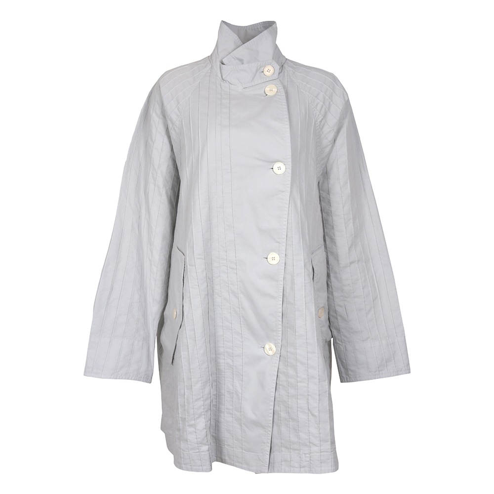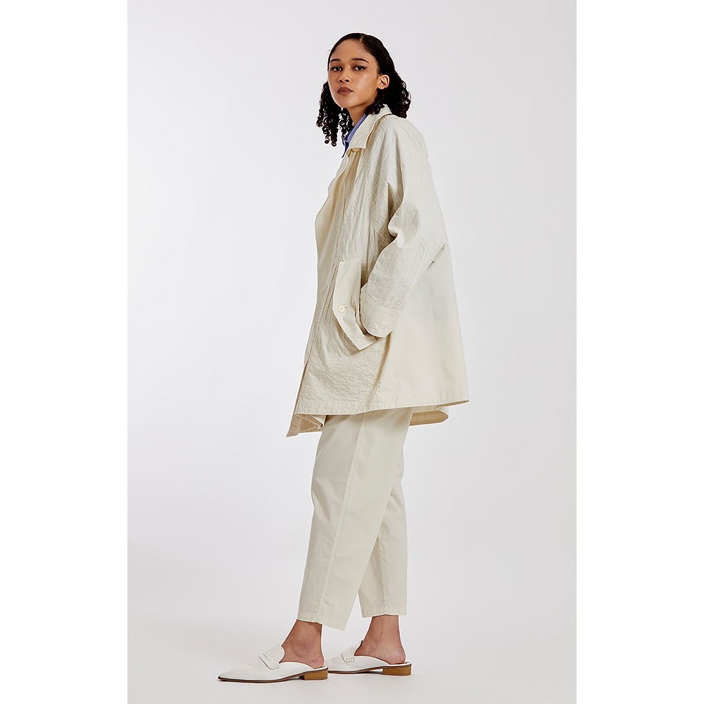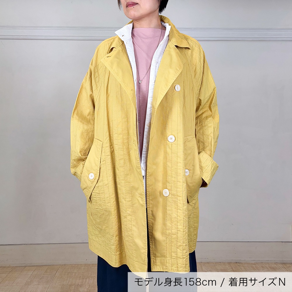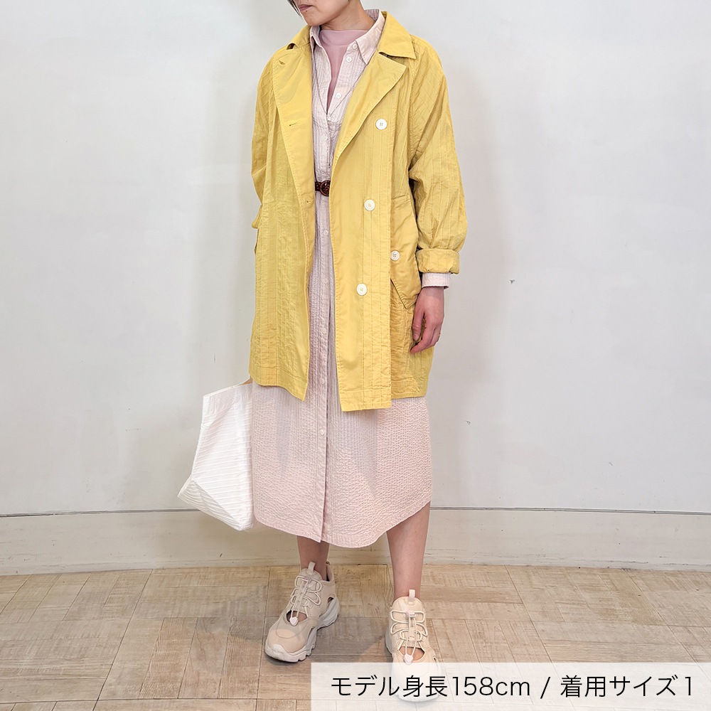 さらっとした肌触りで、爽やかなコットンピケ素材を使ったスプリングコート。 肩の落ち感にこだわったラグランスリーブ、ヒップ下まである丈で、こなれ感のあるオーバーサイズのカジュアルモードな雰囲気です。 間隔をあけたピンタックと無地をバランスよく組み合わせ、どんなインナーにも合わせやすく仕上げています。