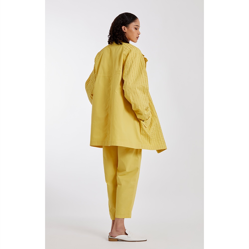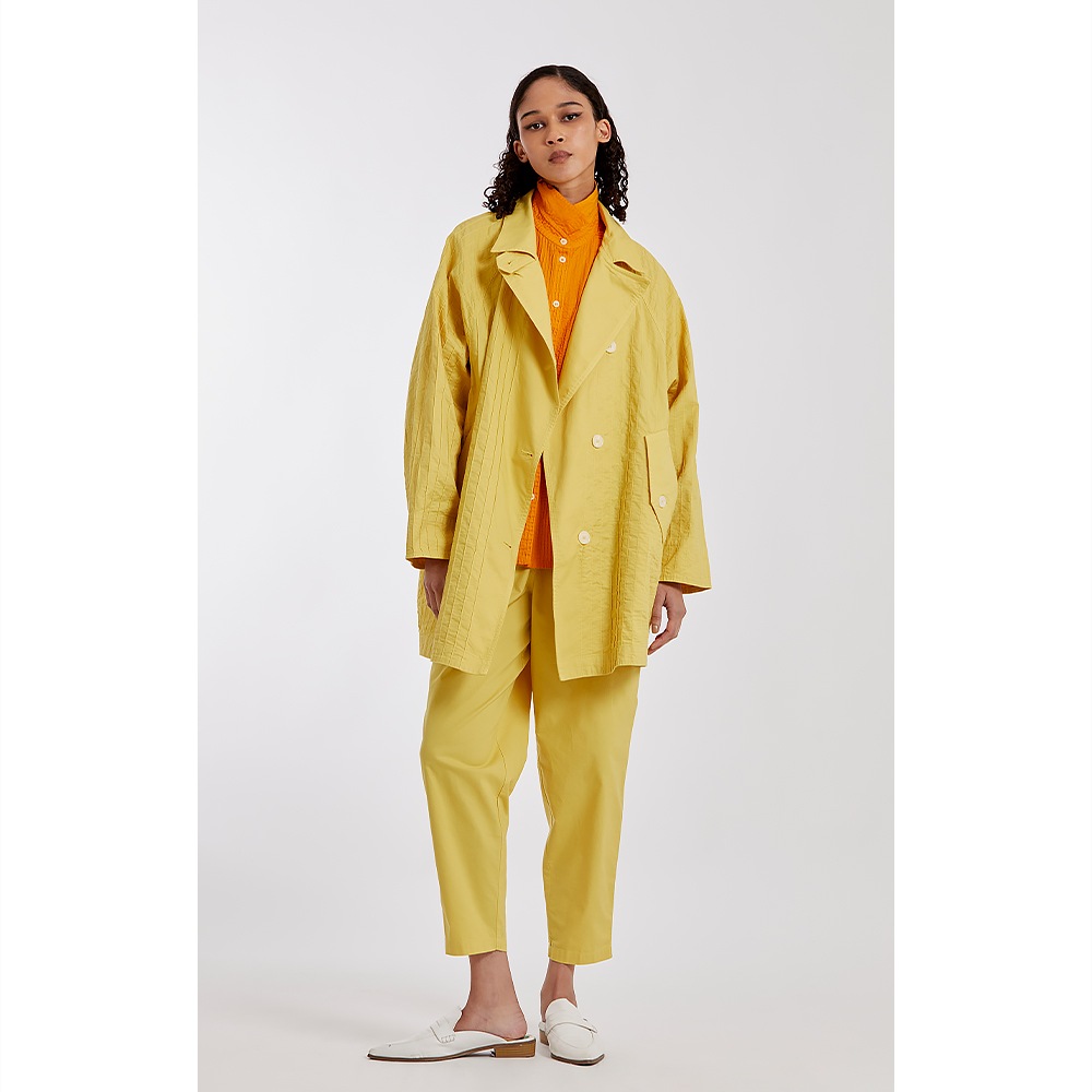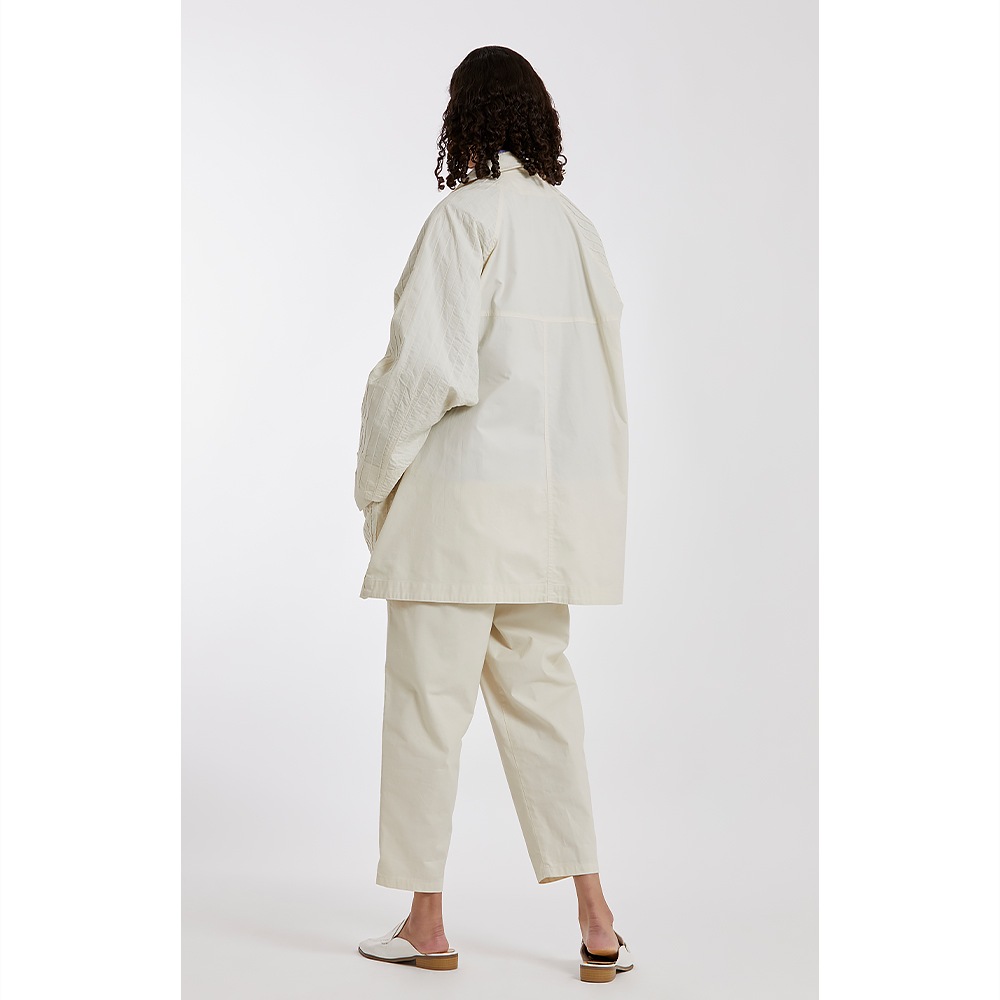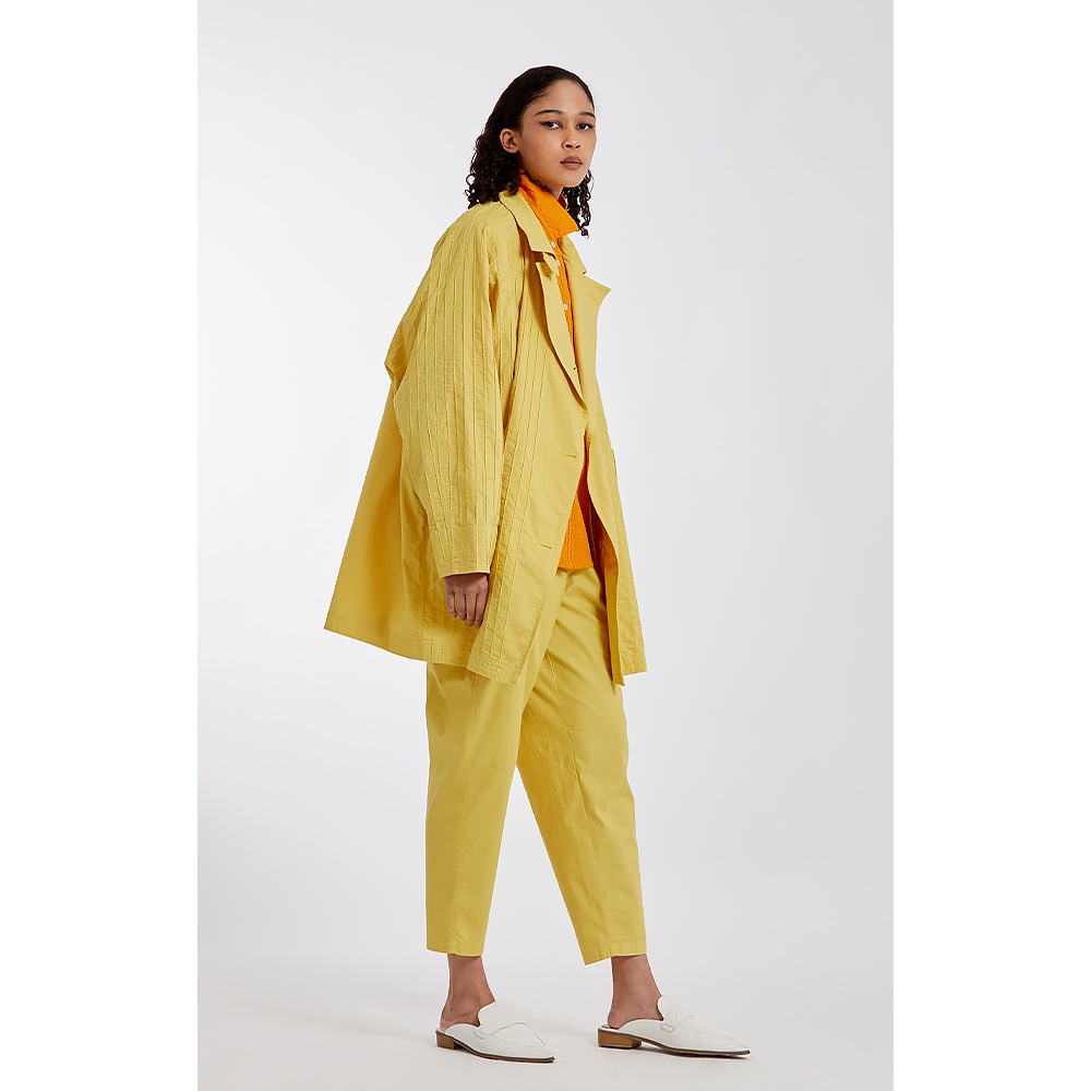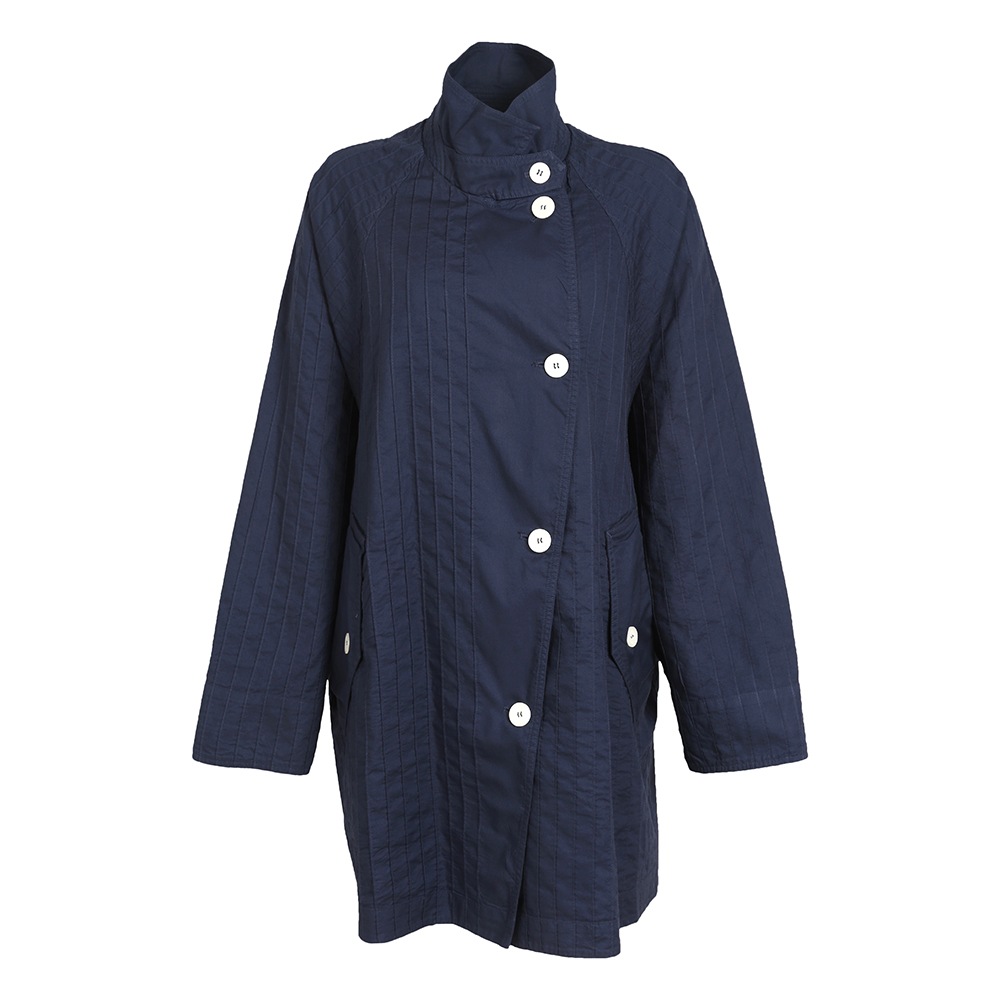 さらっとした肌触りで、爽やかなコットンピケ素材を使ったスプリングコート。 肩の落ち感にこだわったラグランスリーブ、ヒップ下まである丈で、こなれ感のあるオーバーサイズのカジュアルモードな雰囲気です。 間隔をあけたピンタックと無地をバランスよく組み合わせ、どんなインナーにも合わせやすく仕上げています。