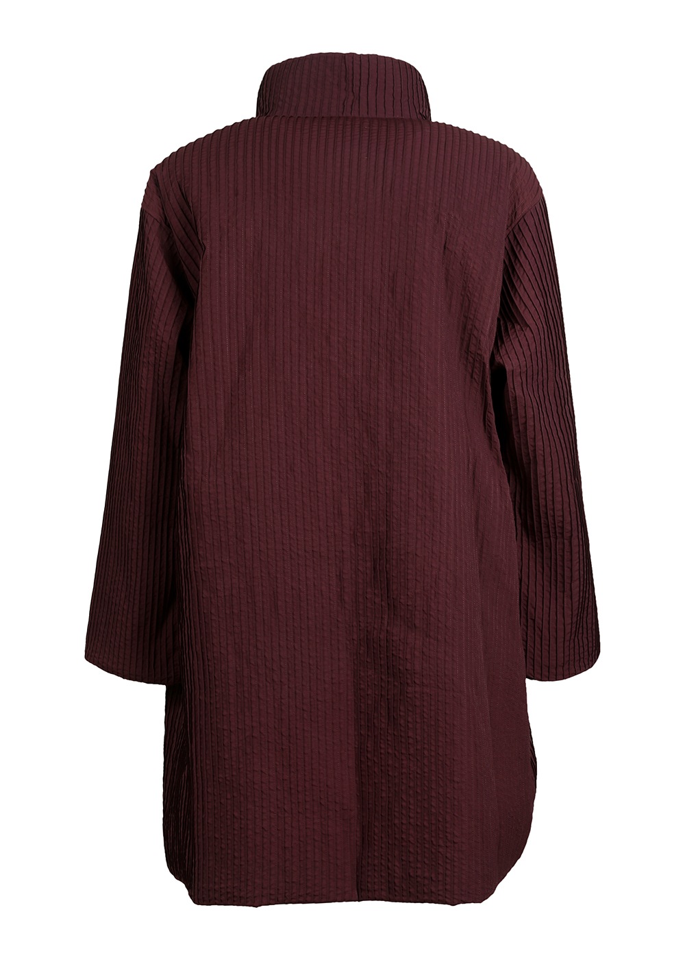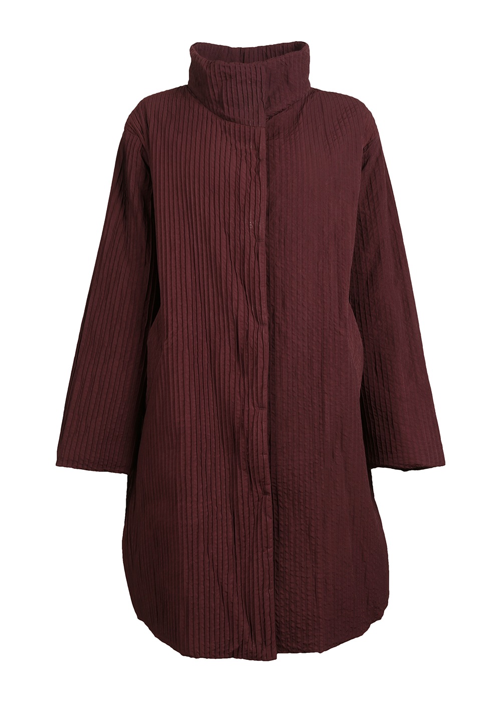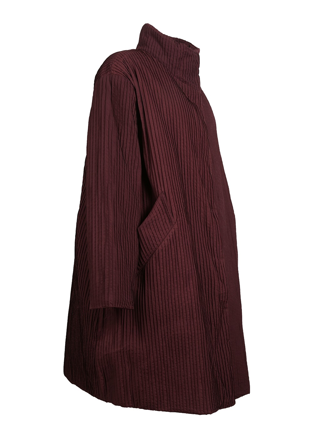 マットな質感でニュアンスのあるナイロン素材を使った、オールピンタックのロングコート。