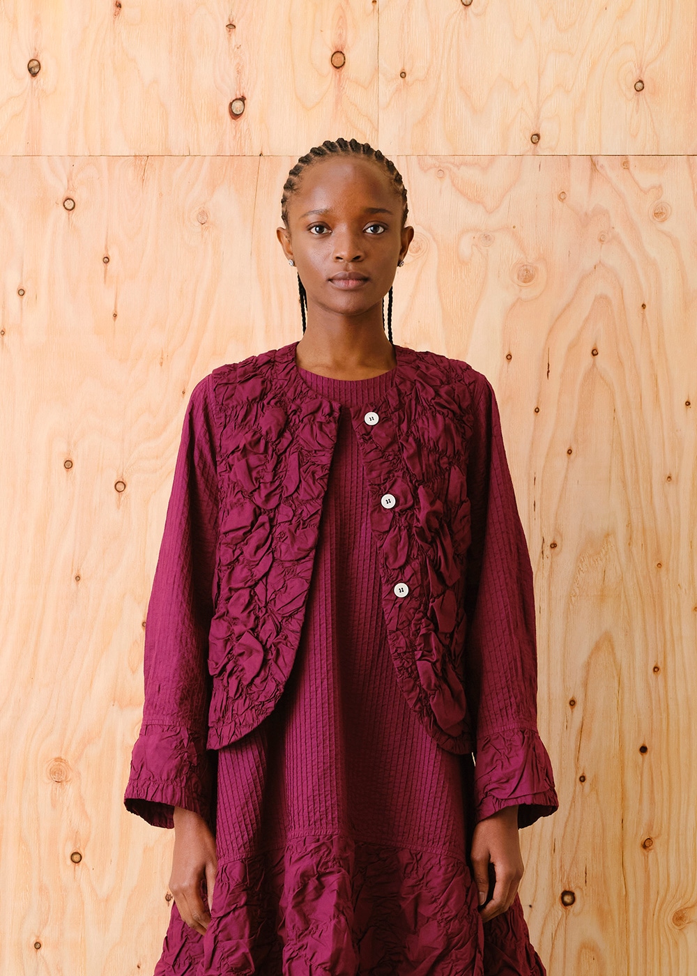 ギャザーを寄せながら曲線のステッチを走らせ、有機的な凹凸感を表現したリンクル(しわ)ギャザーシリーズ。