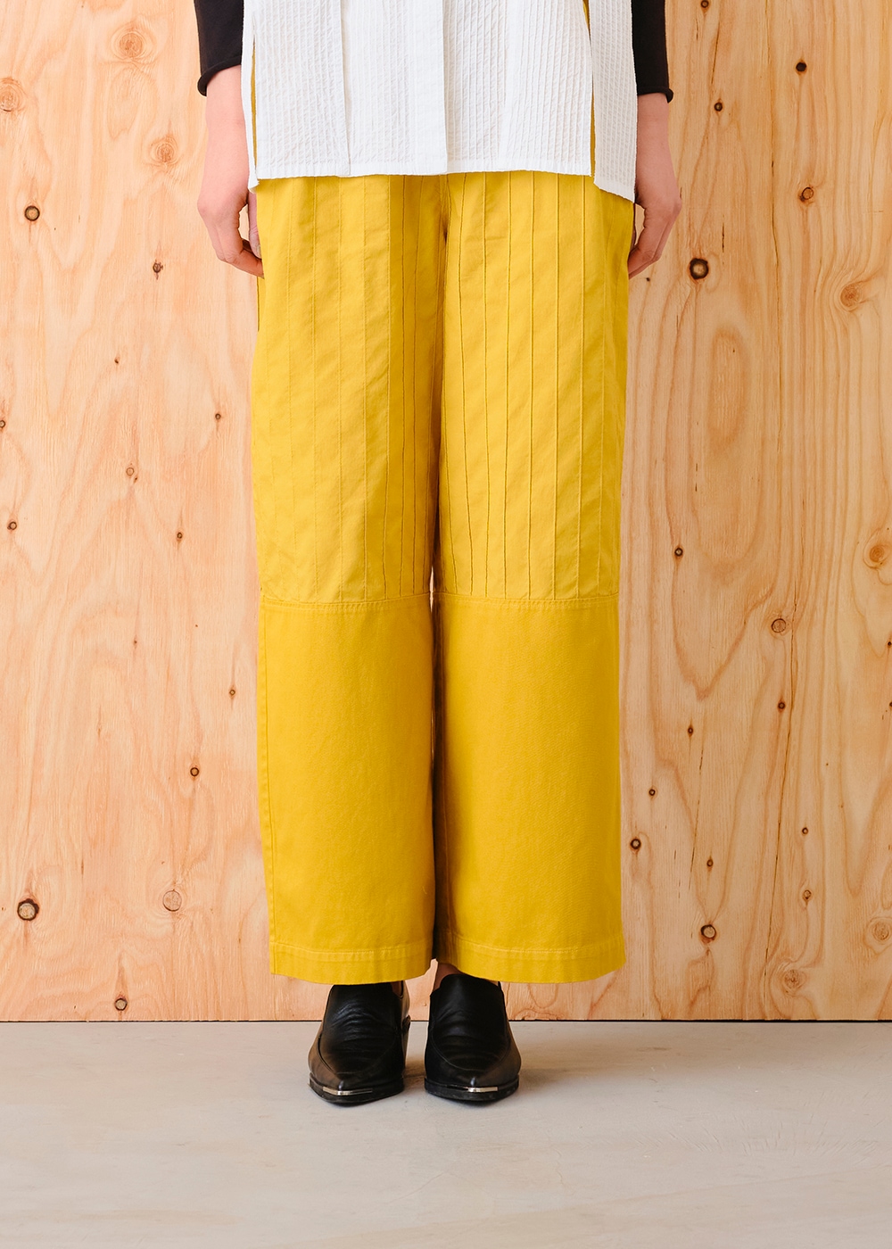 裾無地切り替えストレートパンツ