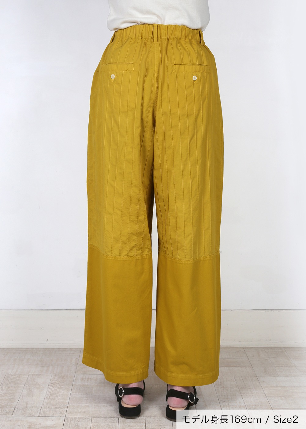 素材を切り替えて、カラーや質感のコントラストがアクセントになったパンツ。