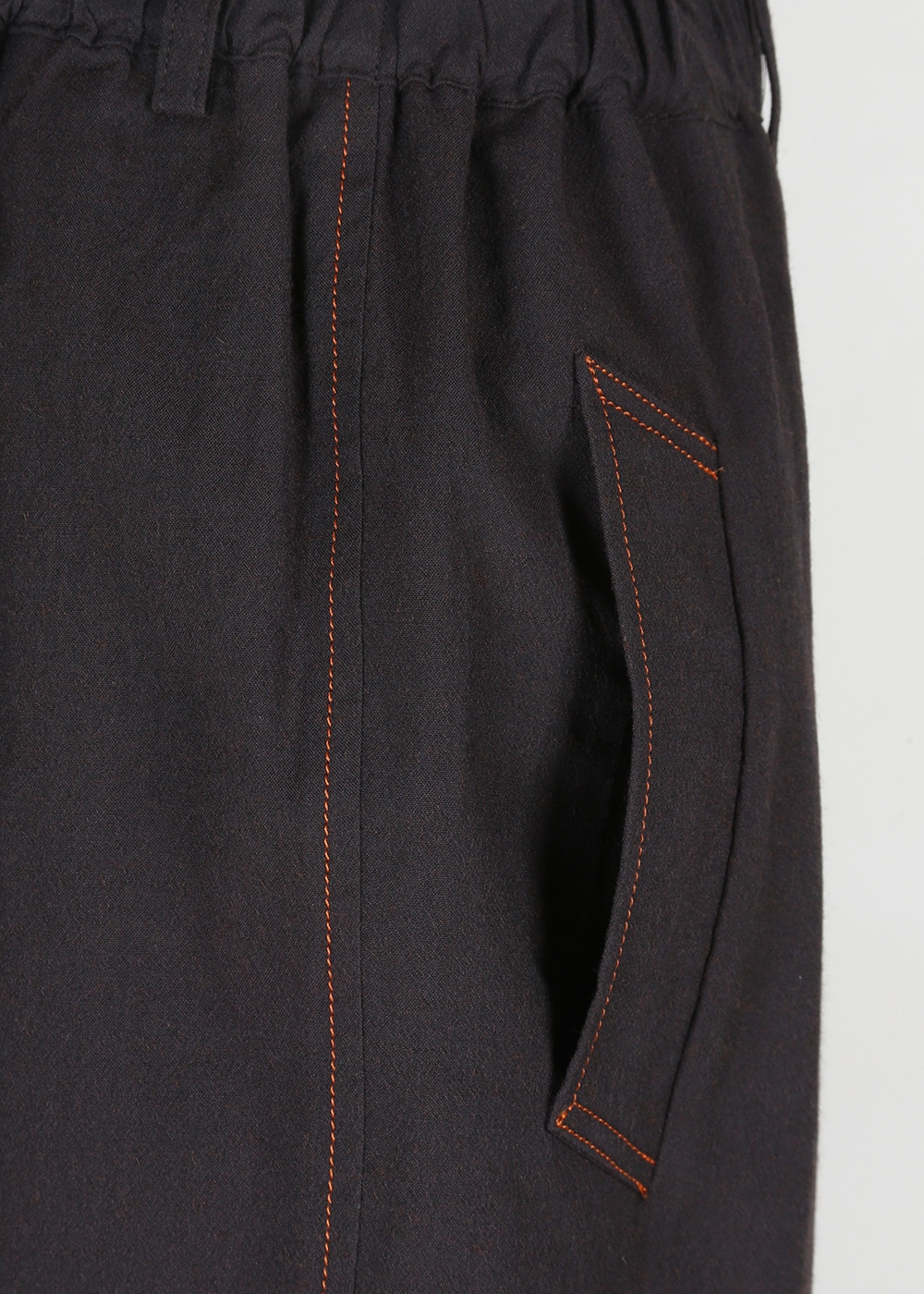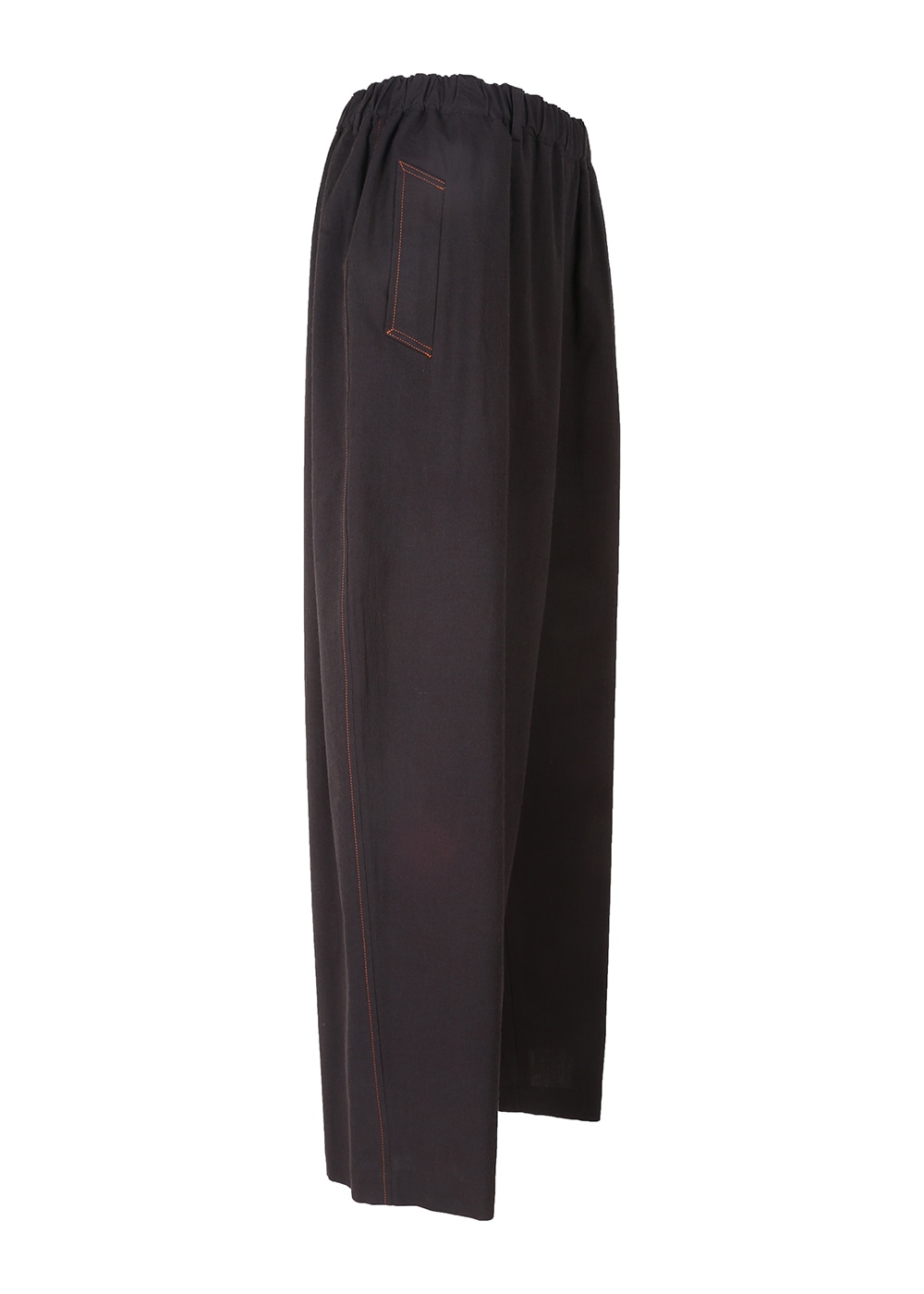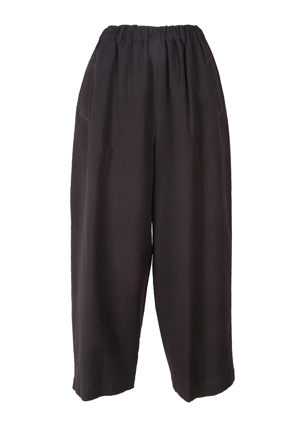綿の素朴感とレーヨンのしなやかさを持った、表情豊かなワッシャー生地を使ったワイドテーパードパンツ。