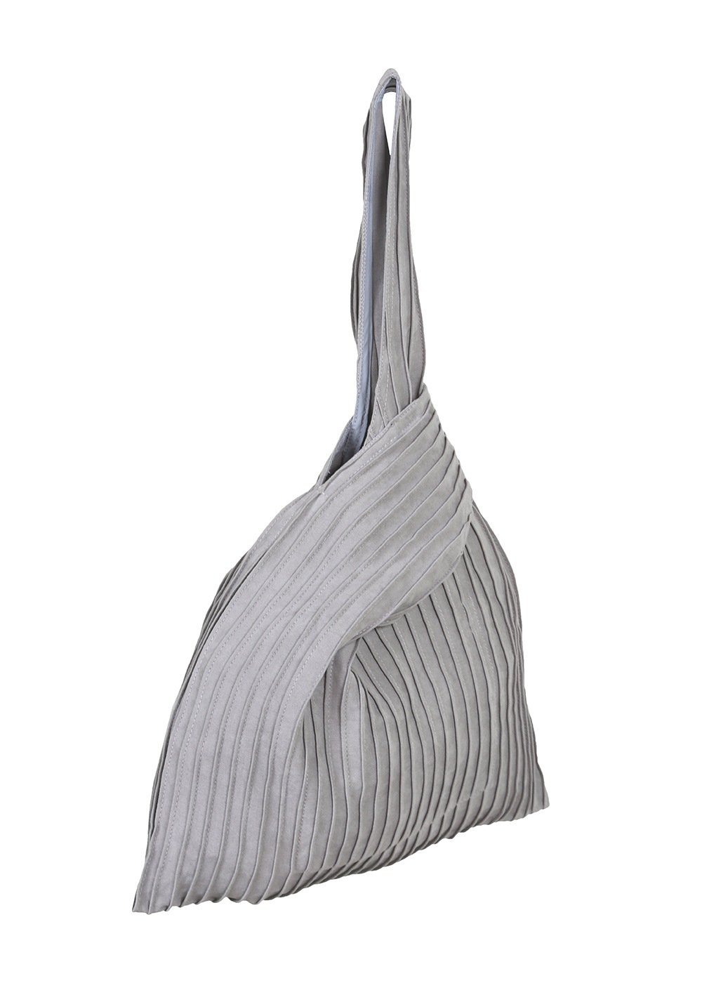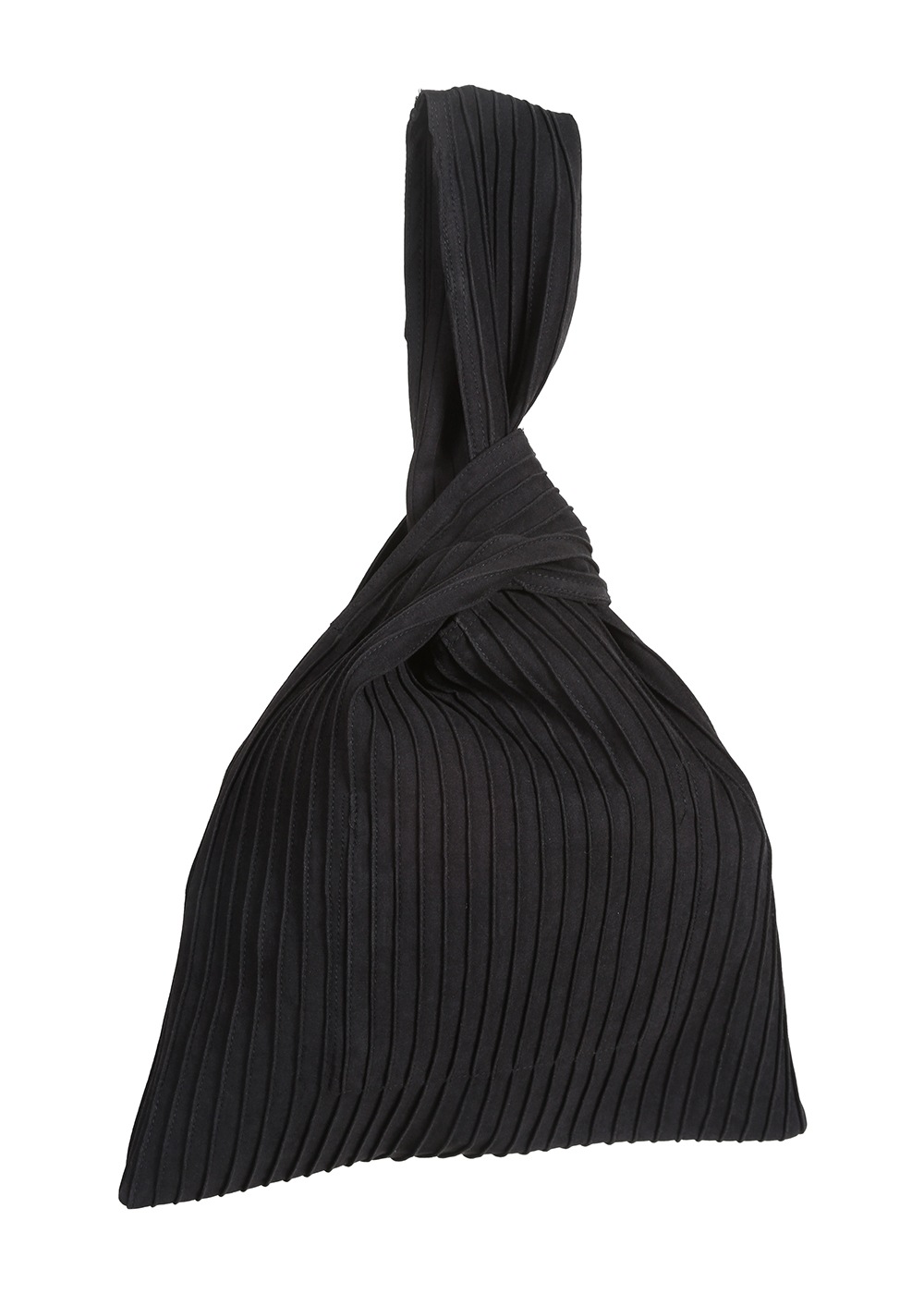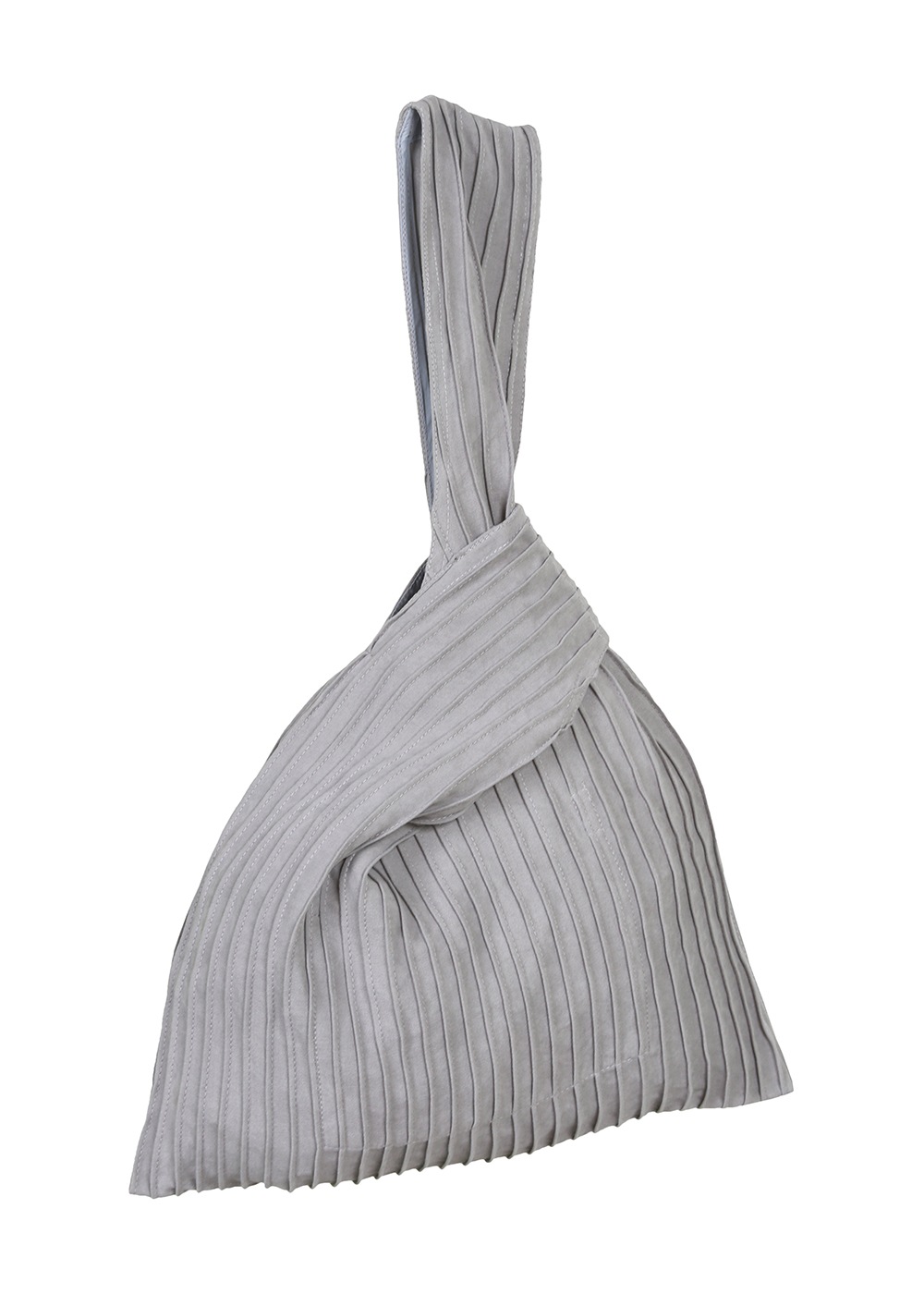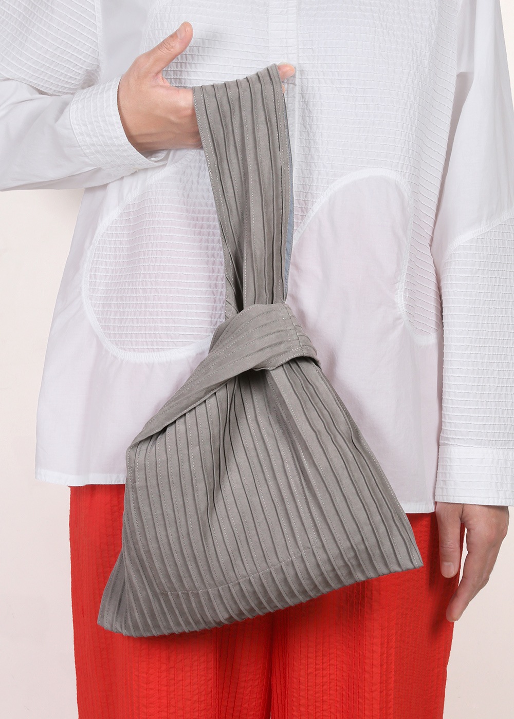 シンプルな形にピンタックが映えるワンハンドルポーチ。