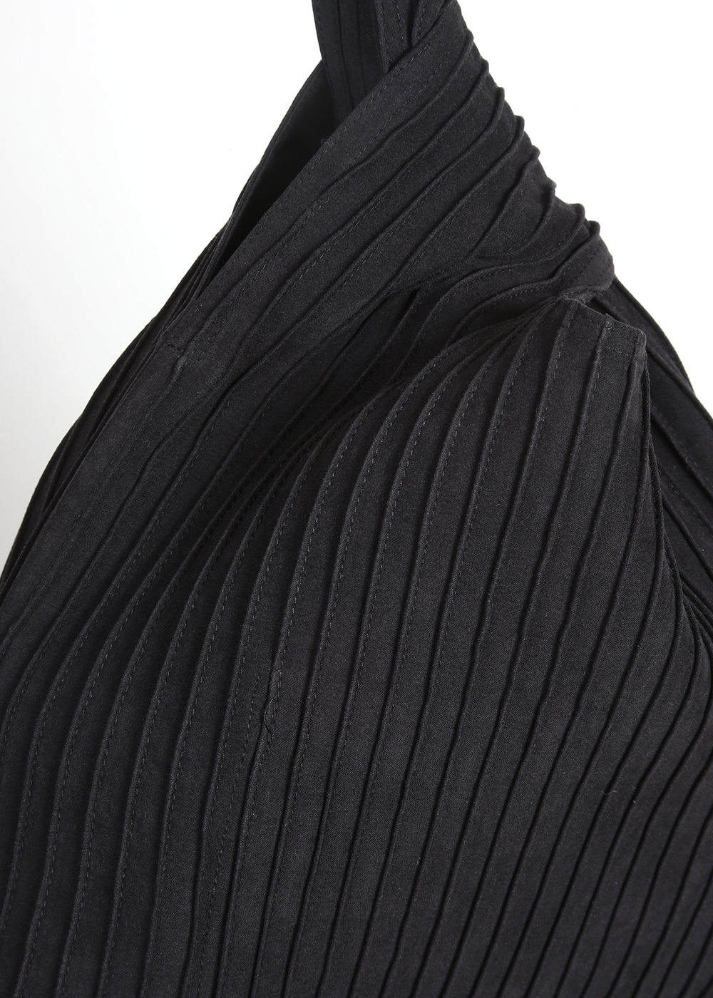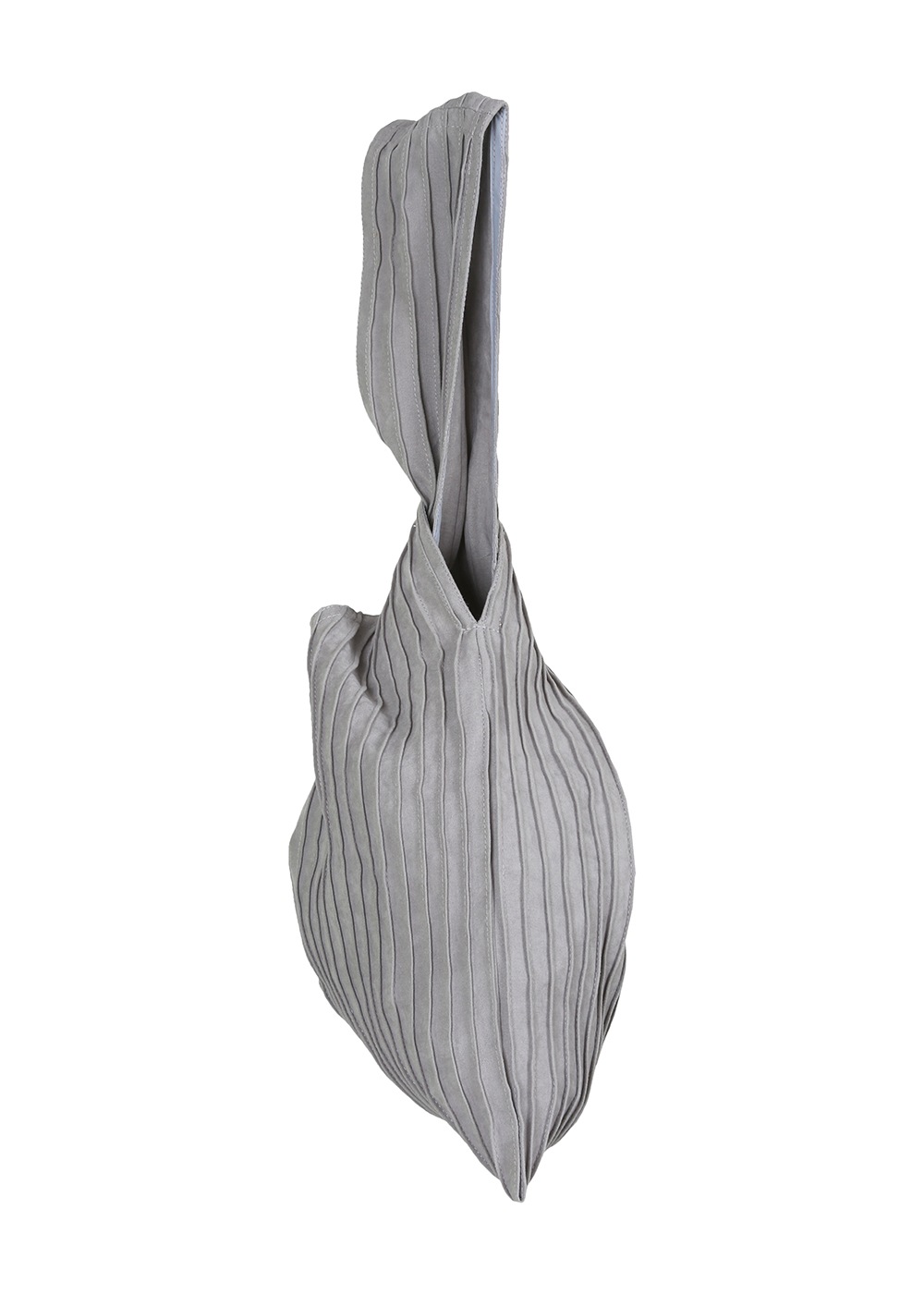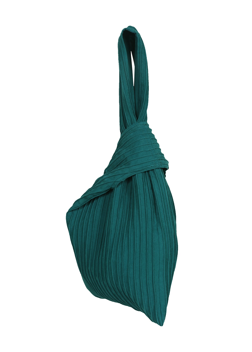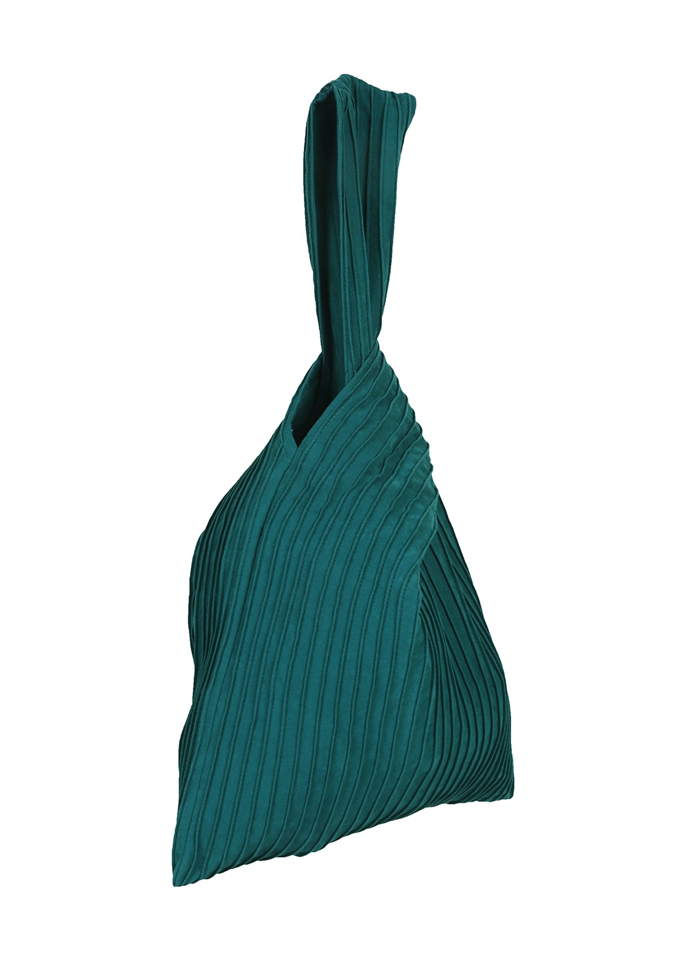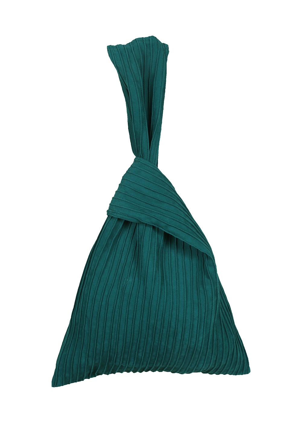 シンプルな形にピンタックが映えるワンハンドルポーチ。