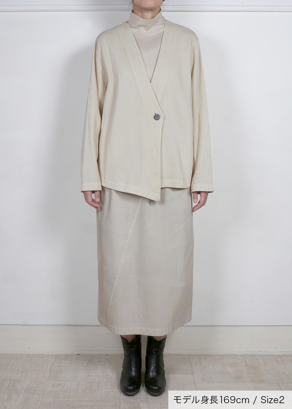 サイズ1:着丈59cm / バスト108cm / 裄丈80cm サイズ2:着丈60.5cm / バスト116cm / 裄丈81cm |