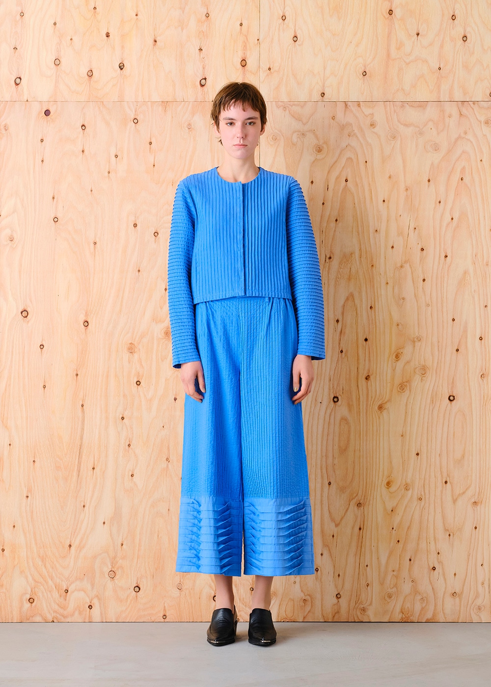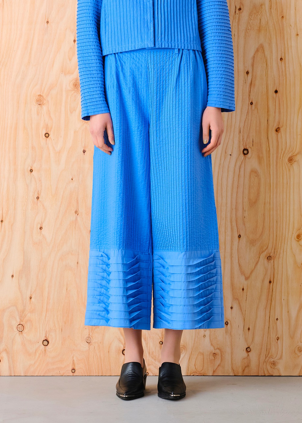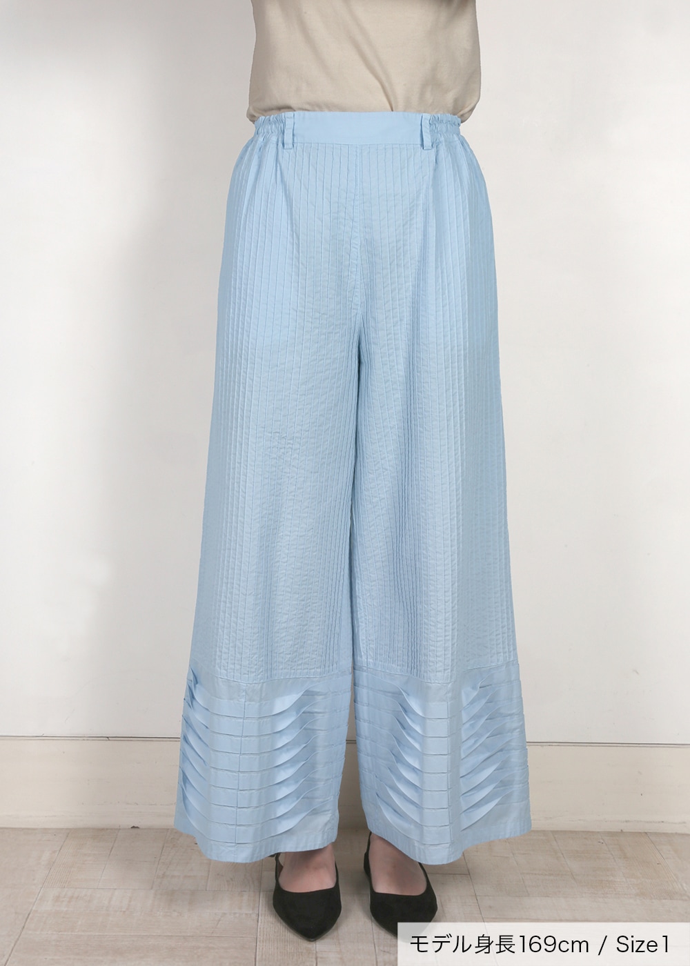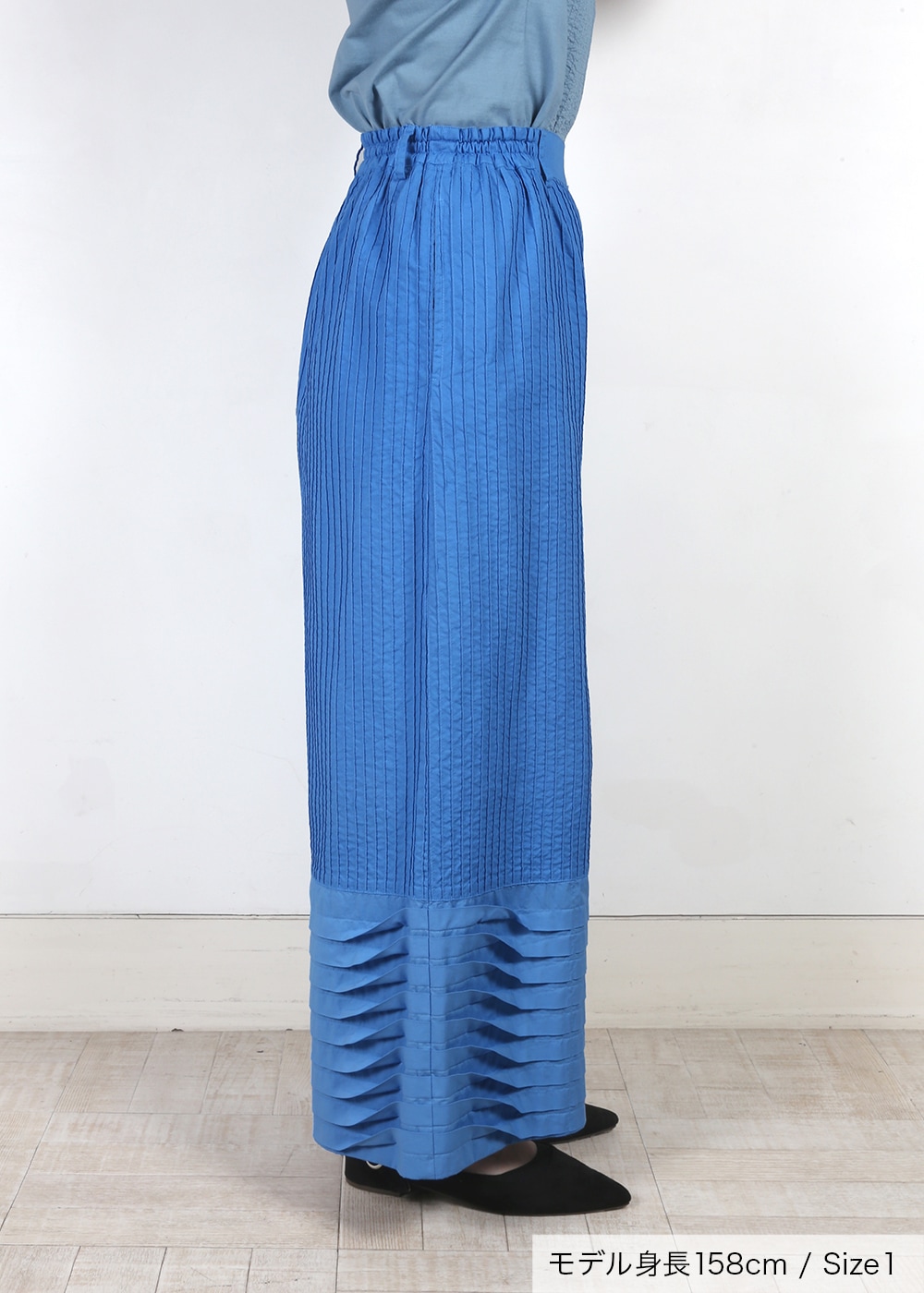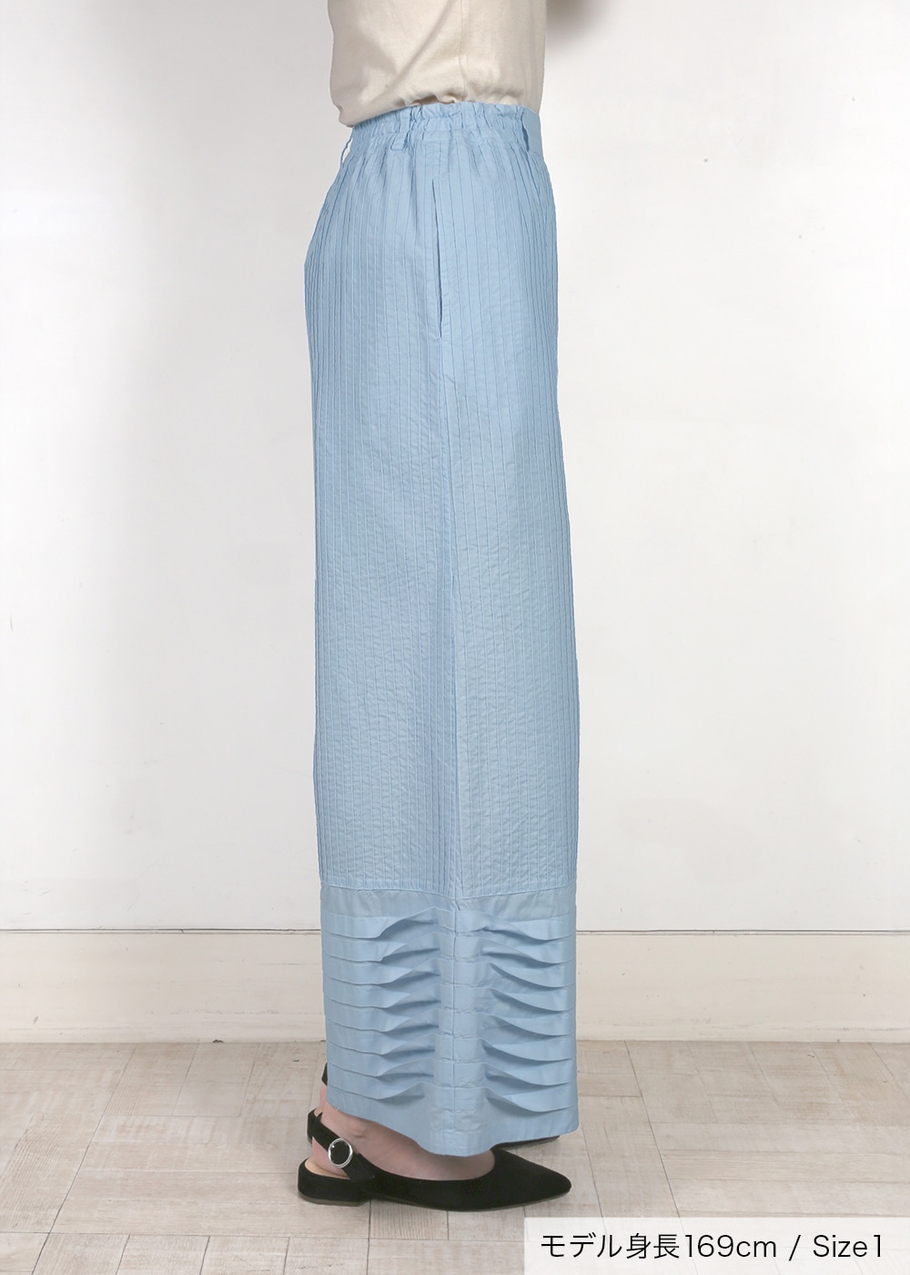 裾ウェーブプリーツピンタックパンツ