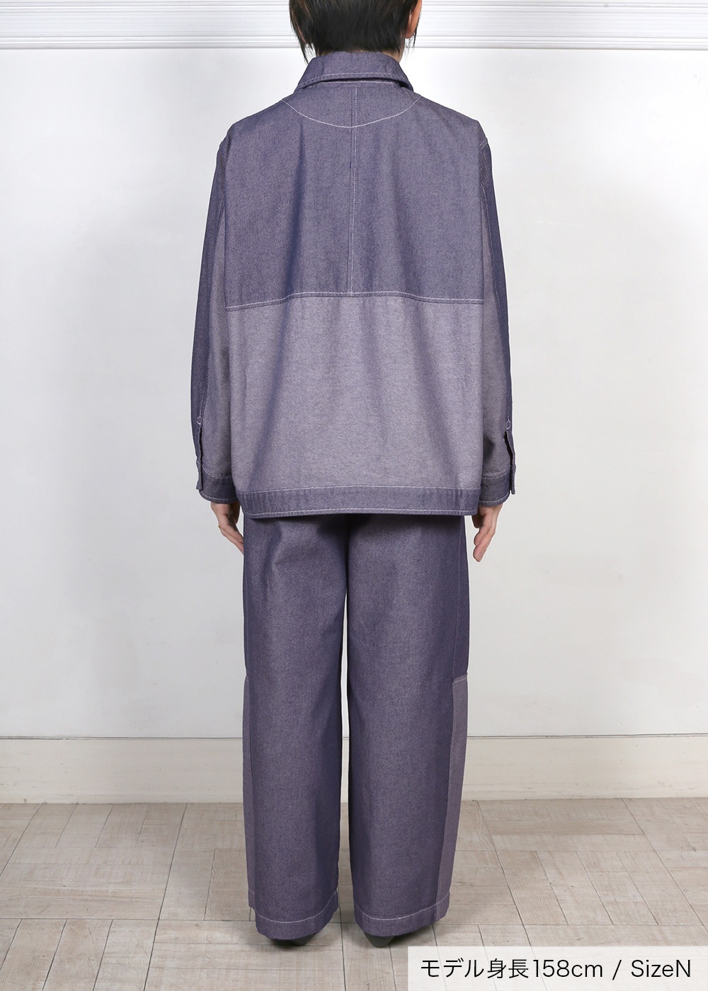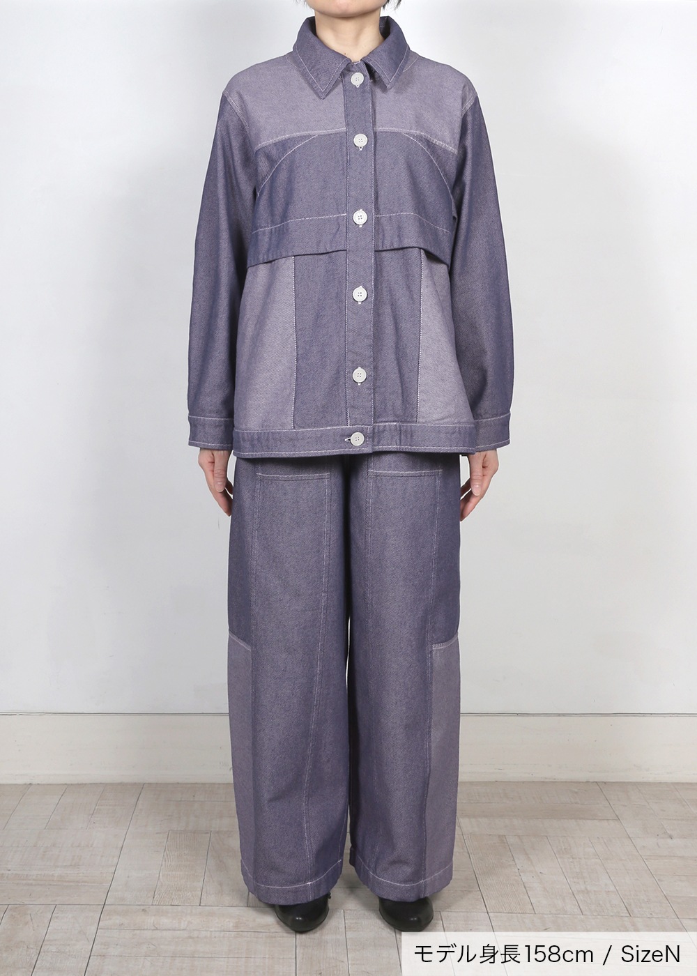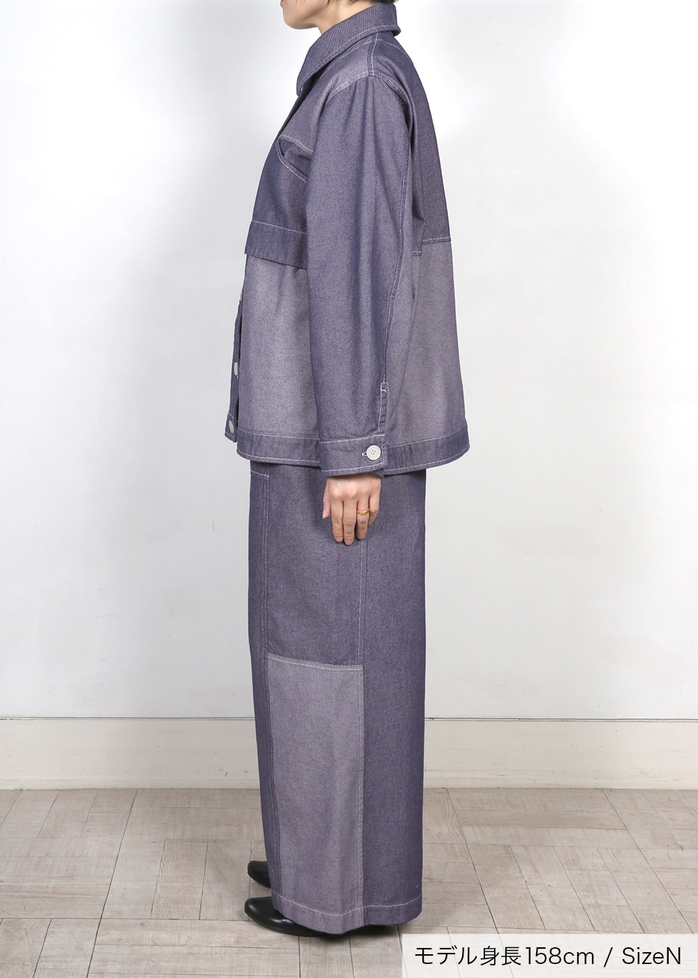 きれいめな大人カジュアルのスタイルをつくる羽織アイテム、同シリーズのパンツとセットアップで着用できます。