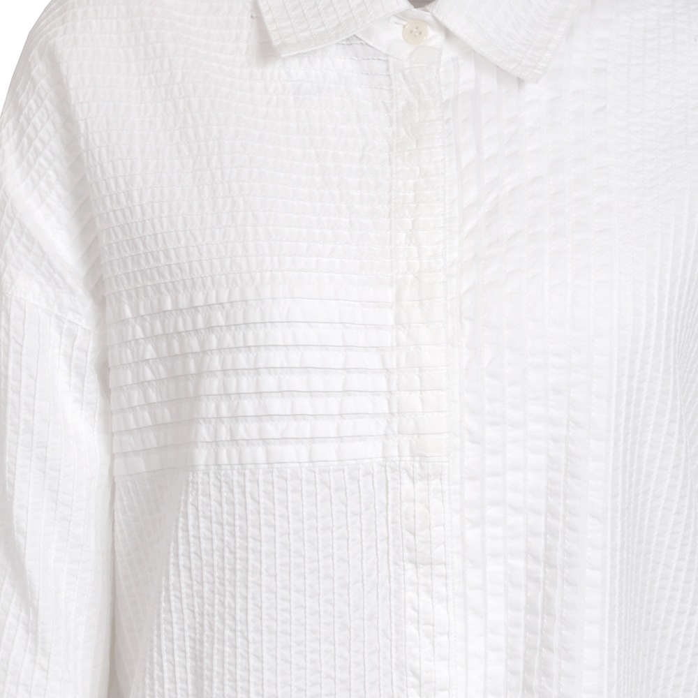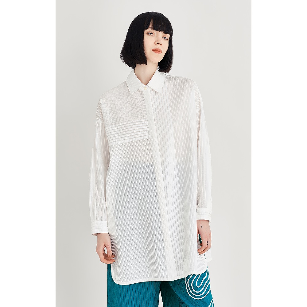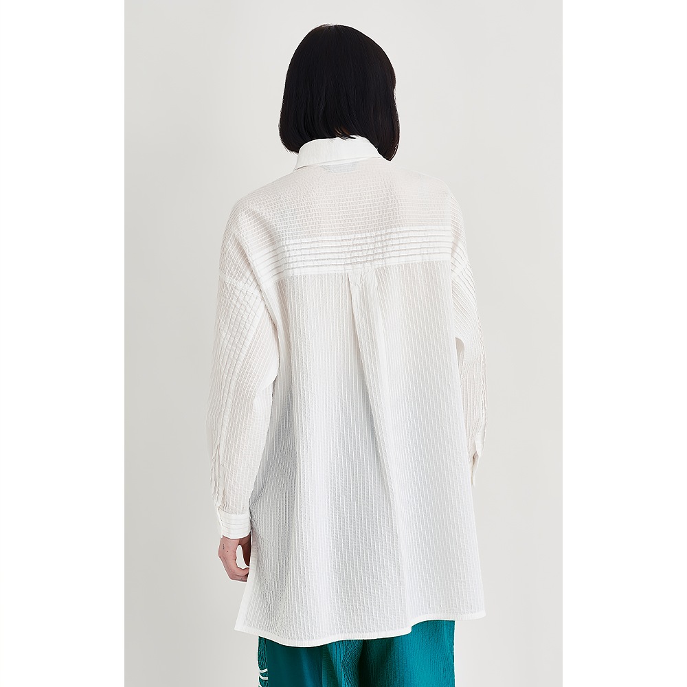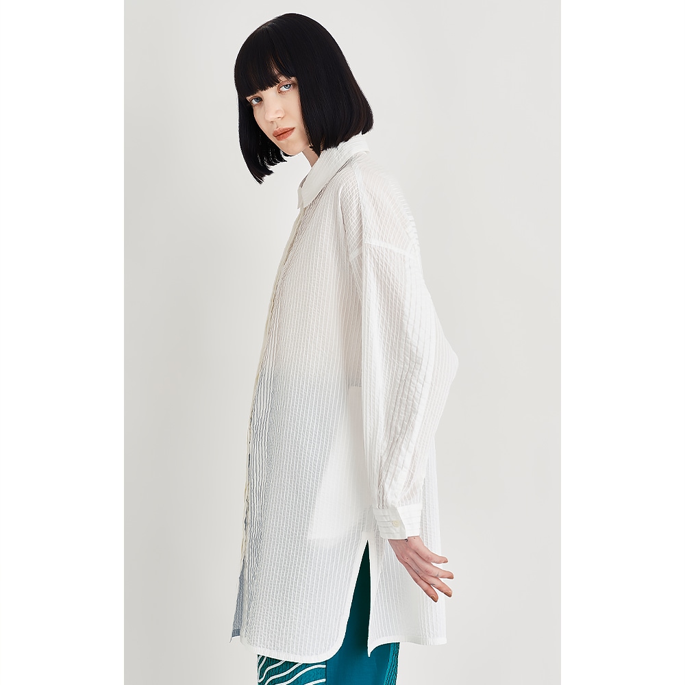 ピンタックのストレートな美しさが際立つ、清々しさをまとったオーバーシャツ。