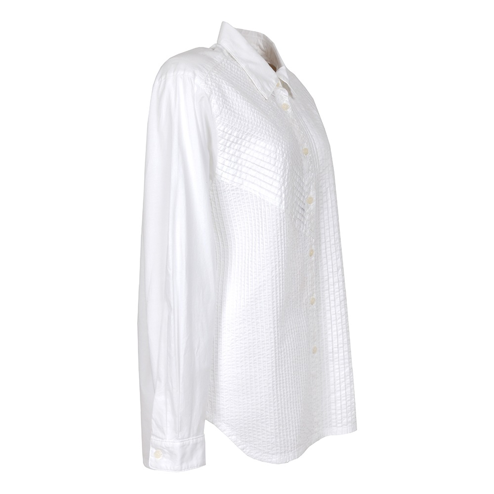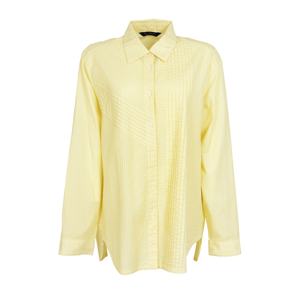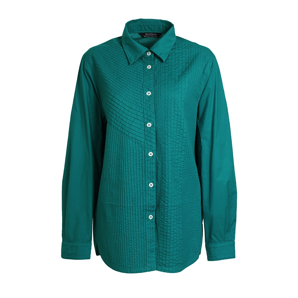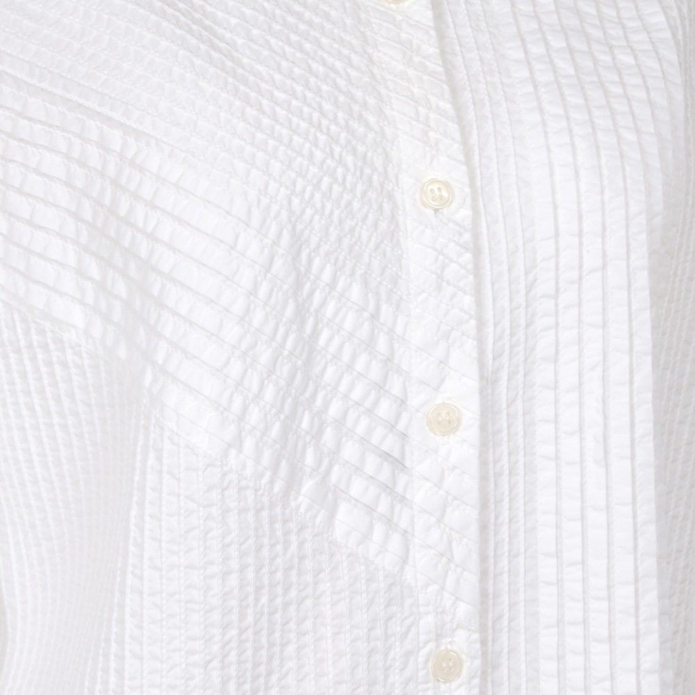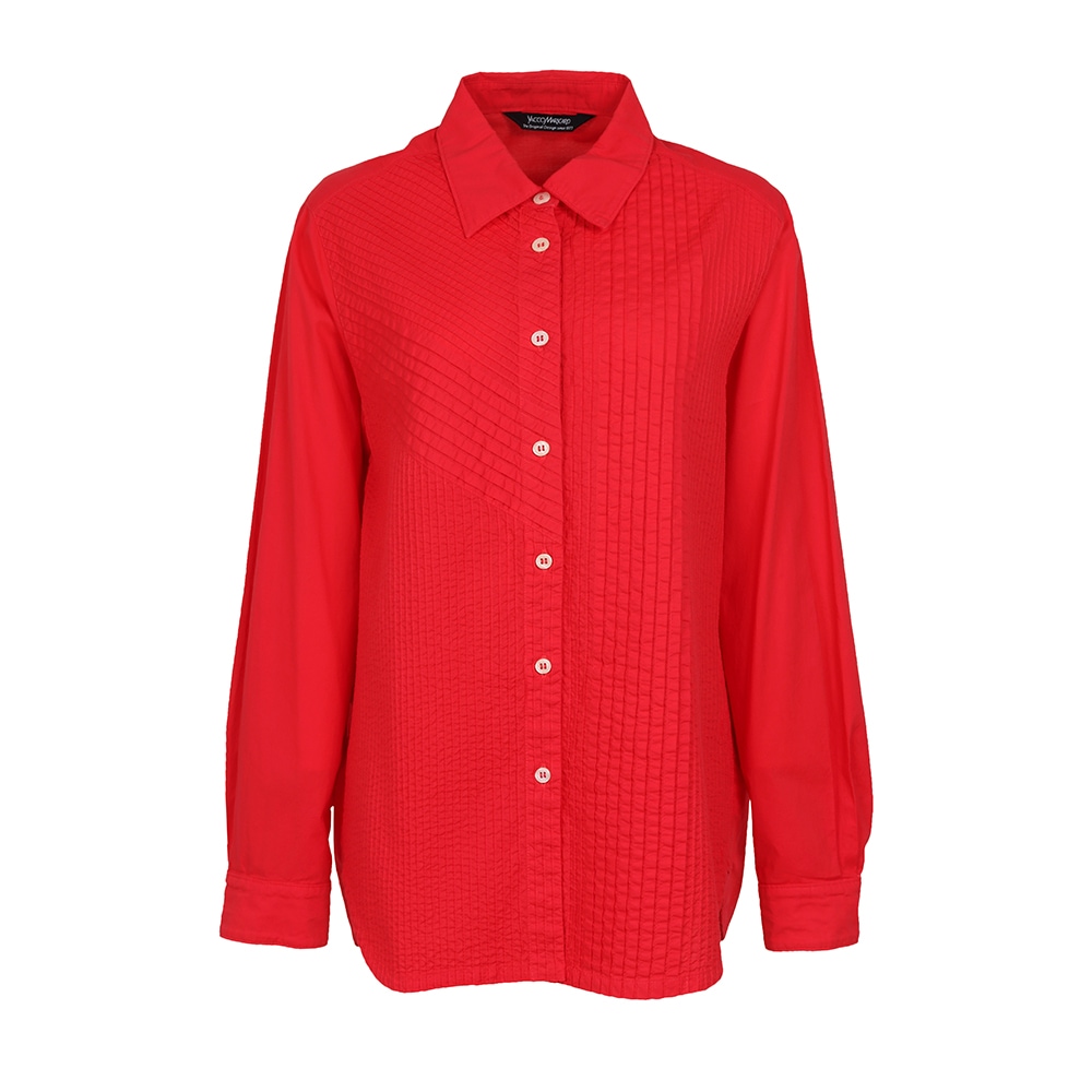 斜めと縦のラインがアクセントになった、シンプルシルエットのシャツ。