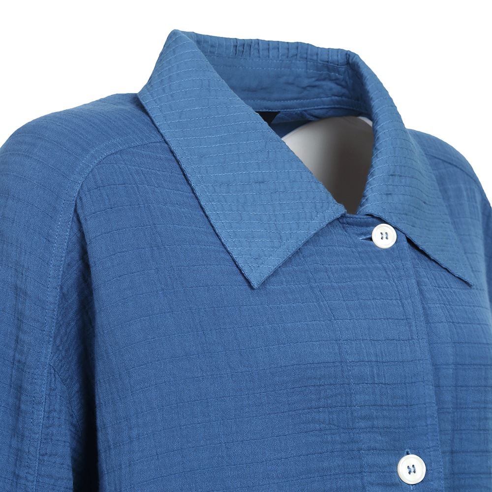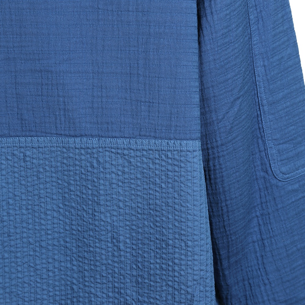肩まわりに柔らかいガーゼクレープを使うことで、リラックスしたストレスフリーな着心地に仕上げています。
